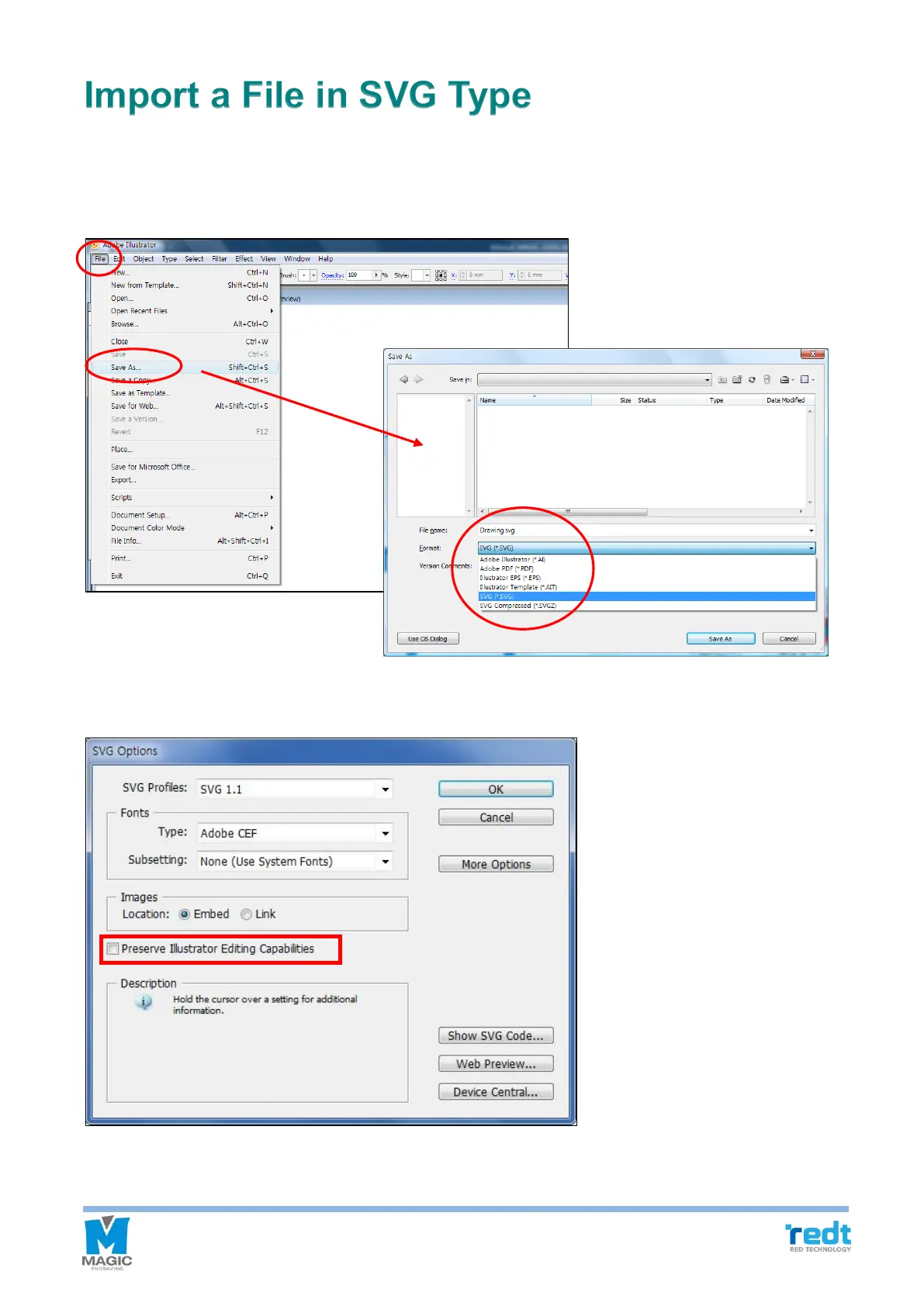 as SVG type from design program Illustrator or CorelDraw, you can import the file to the Magic Art.