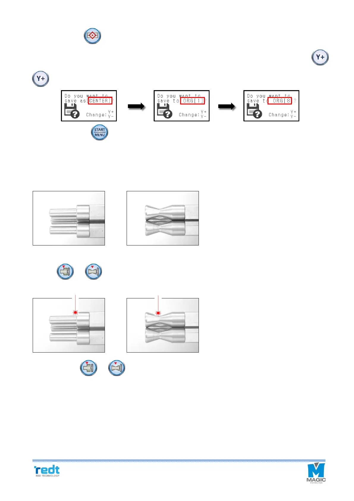2. Press or button to turn on the laser pointer at the Origin of the chuck finger.
