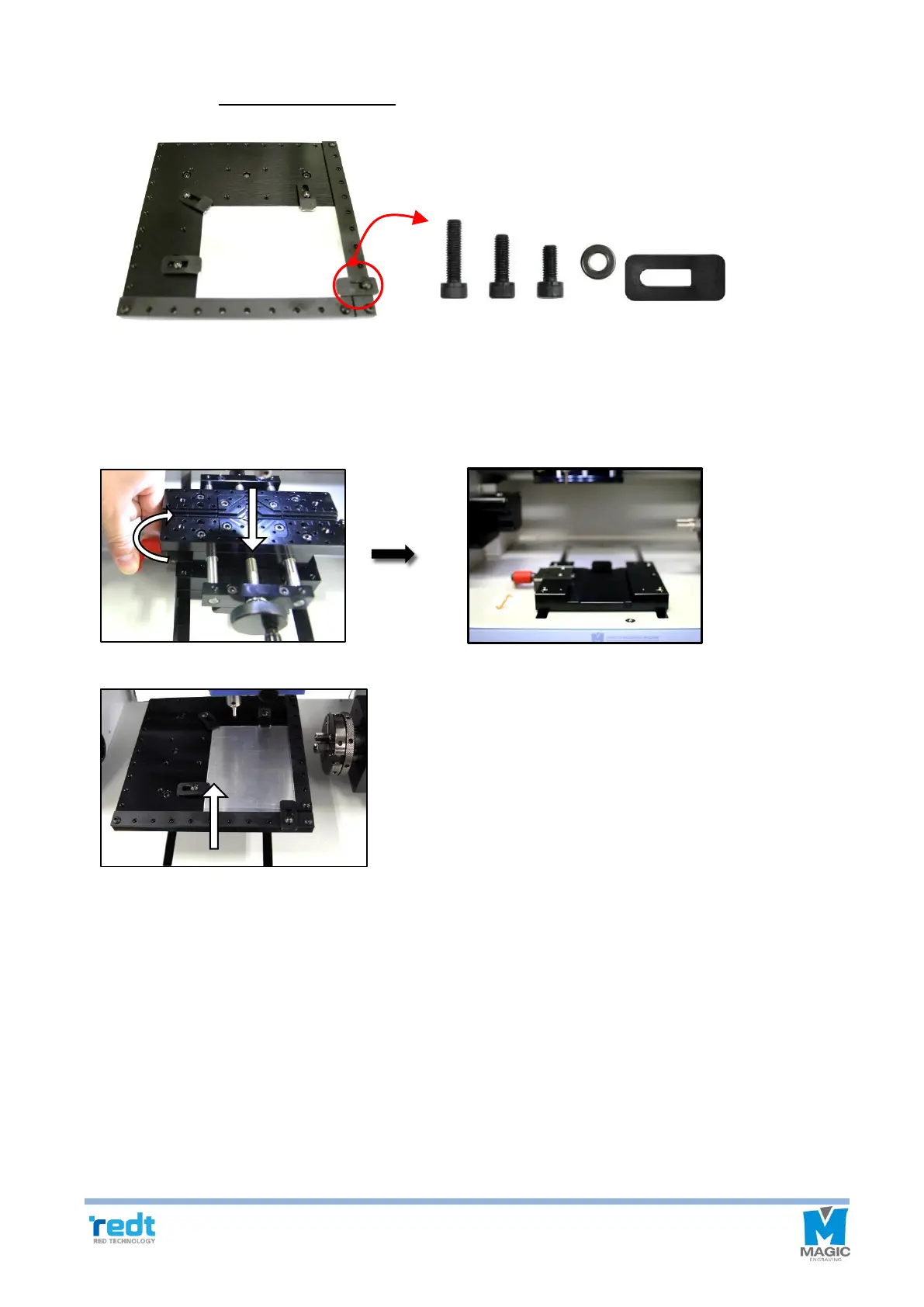Is secured on the base table by using 4 bolts at each corner of the clamp.