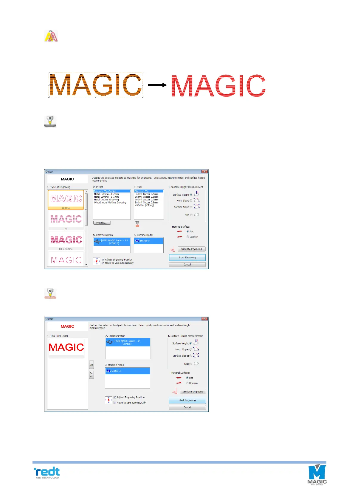 engraving selection list on the Engrave window and select engraving options and measuring methods before
