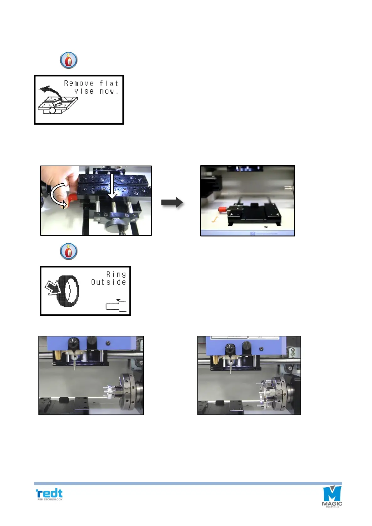 1. Press button on the engraver. A message requiring removal of the clamp appears on the screen.