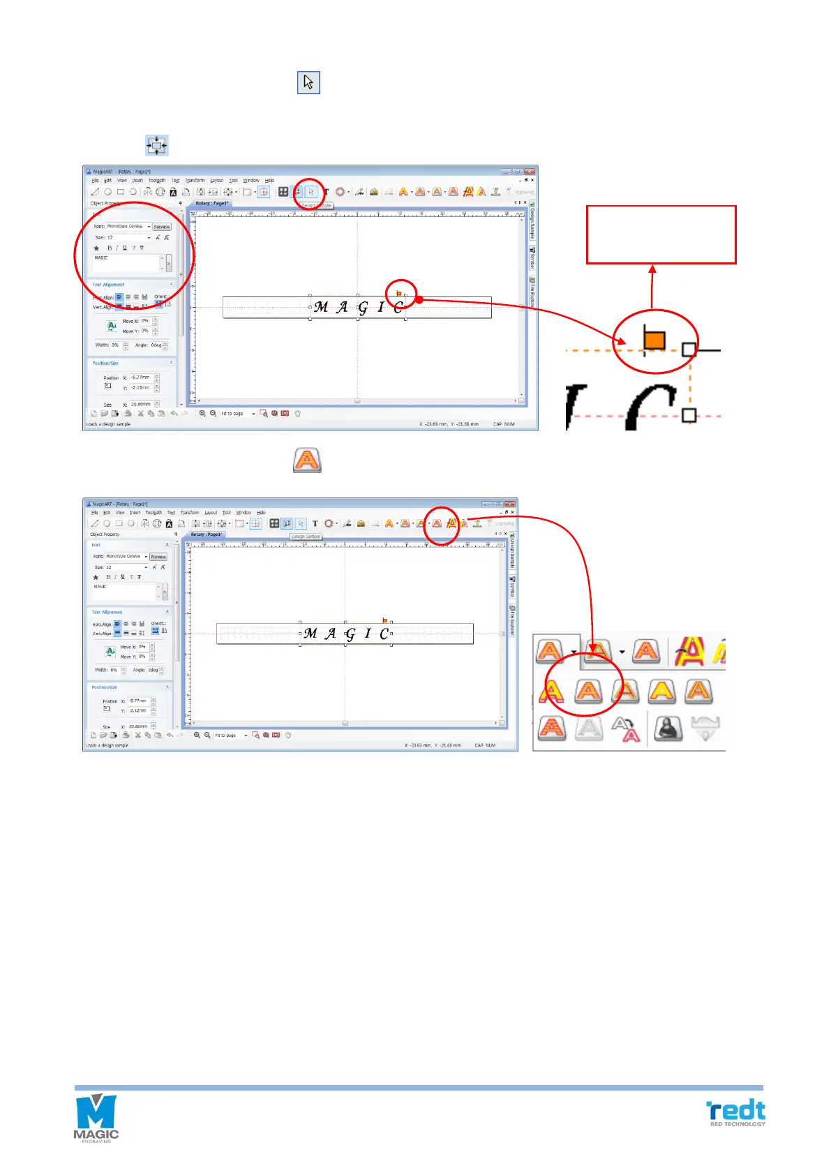 character string, and edit the size and font of the object. If you want to place the object at the center of the work