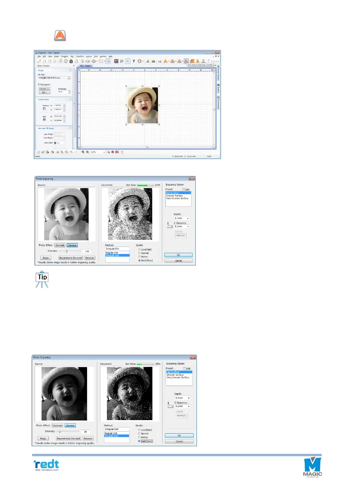 darker image shows higher quality, adjust the brightness to dark. Normally, dot ratio 10-20% shows the