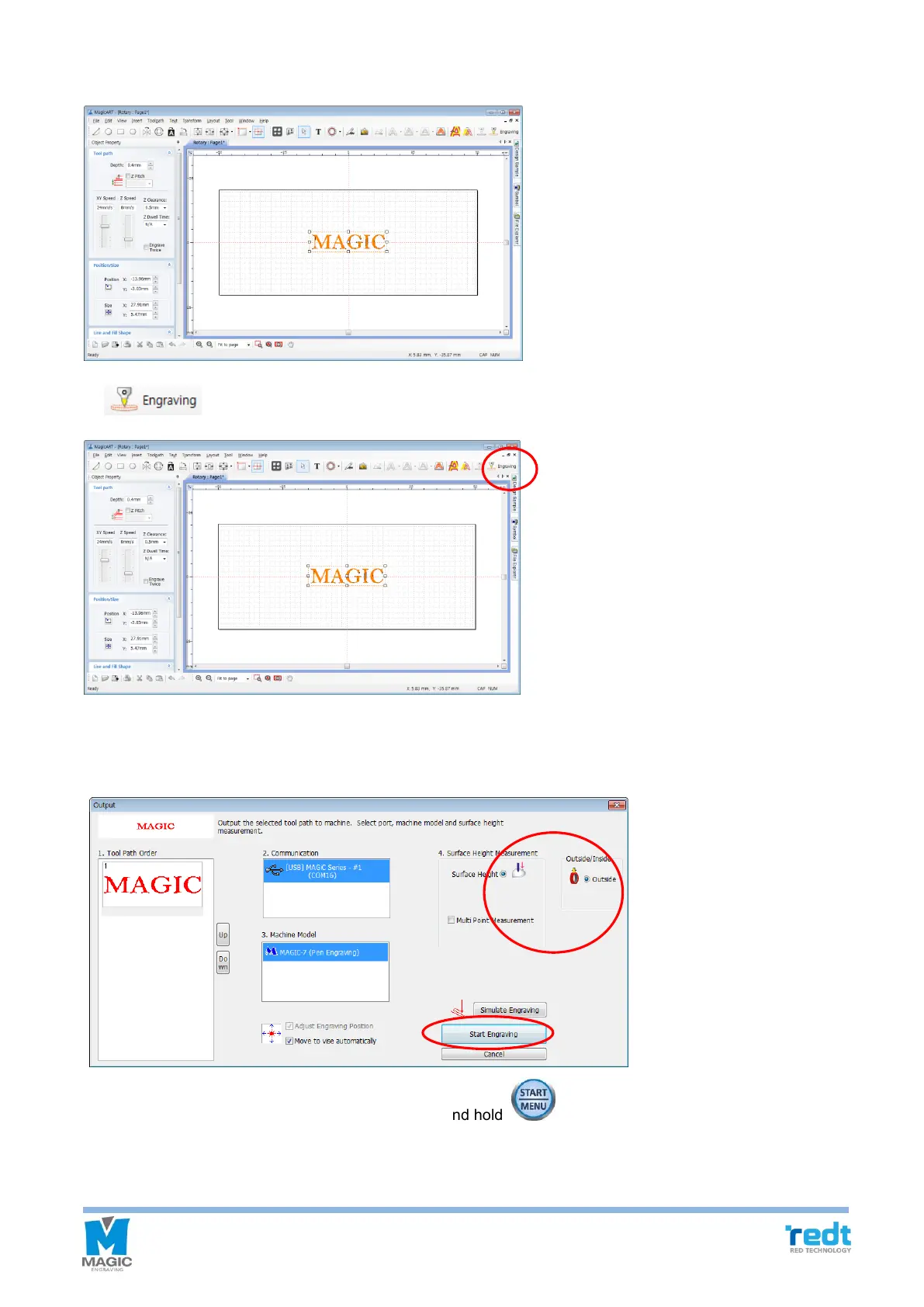 10. Once “Outputwindow appears, specify how to measure engraving material. And then, click “Start engraving