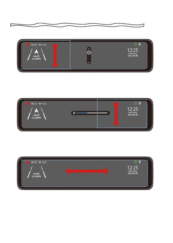 On the RIGHT side of the screen: Slide up and down to adjust the