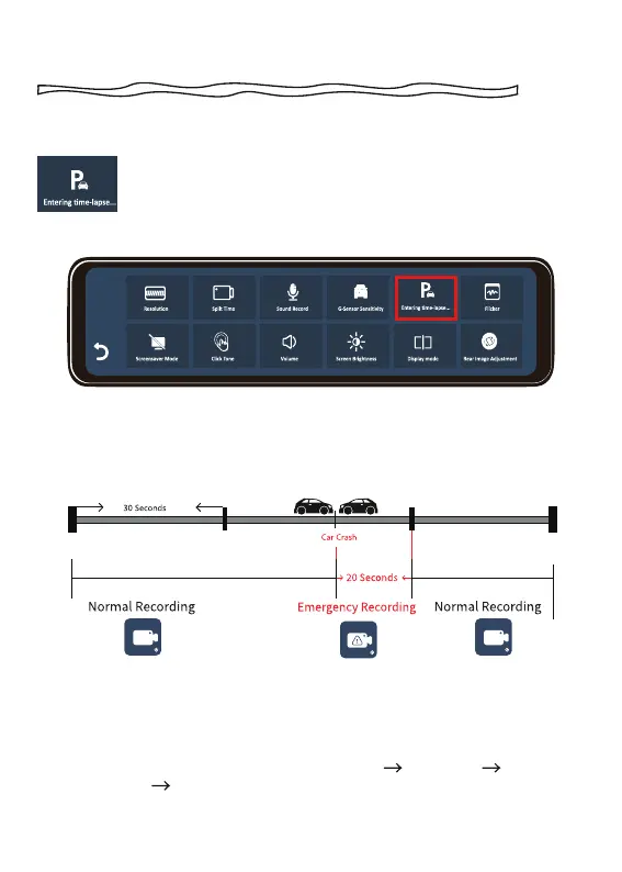 When a car is hit or rubbed, the G sensor detects the impact and saves the next 20