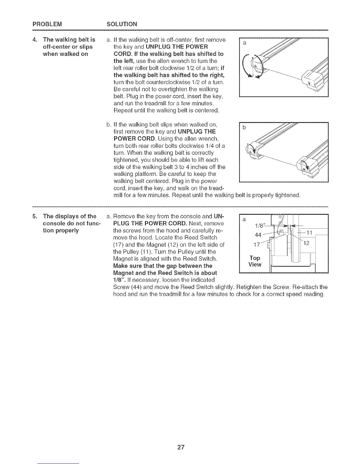 hood and run the treadmiHHfor a few minutes to check for a correct speed reading,