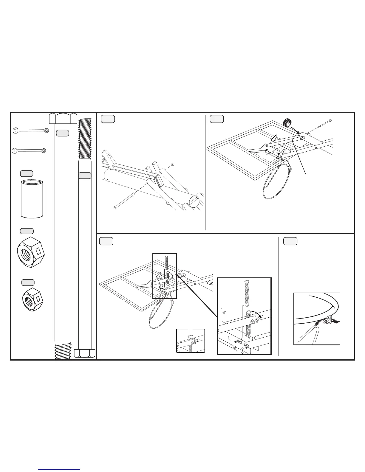 Hook the Springs (AD) into the #3 holes in the Backboard Brackets.