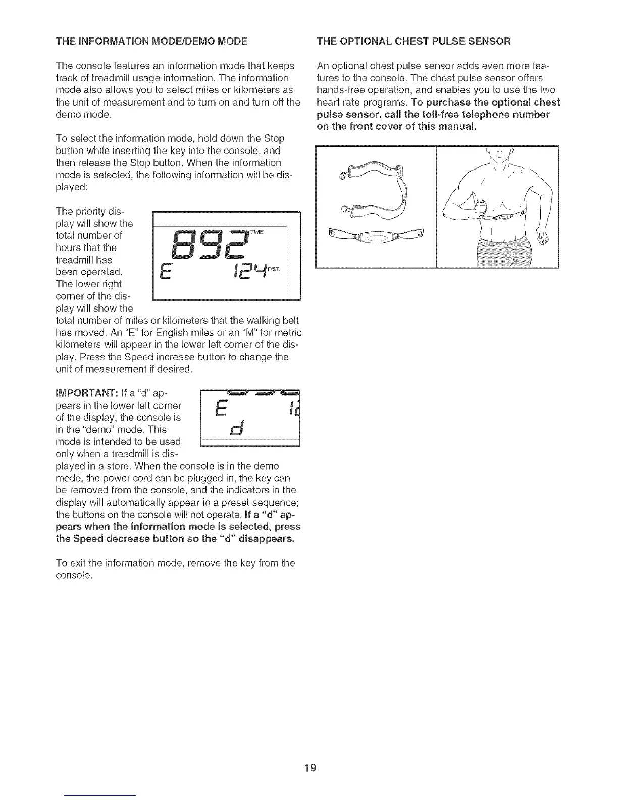THE mNFORMATmONMODE/DEMO MODE THE OPTmONAL CHEST PULSE SENSOR