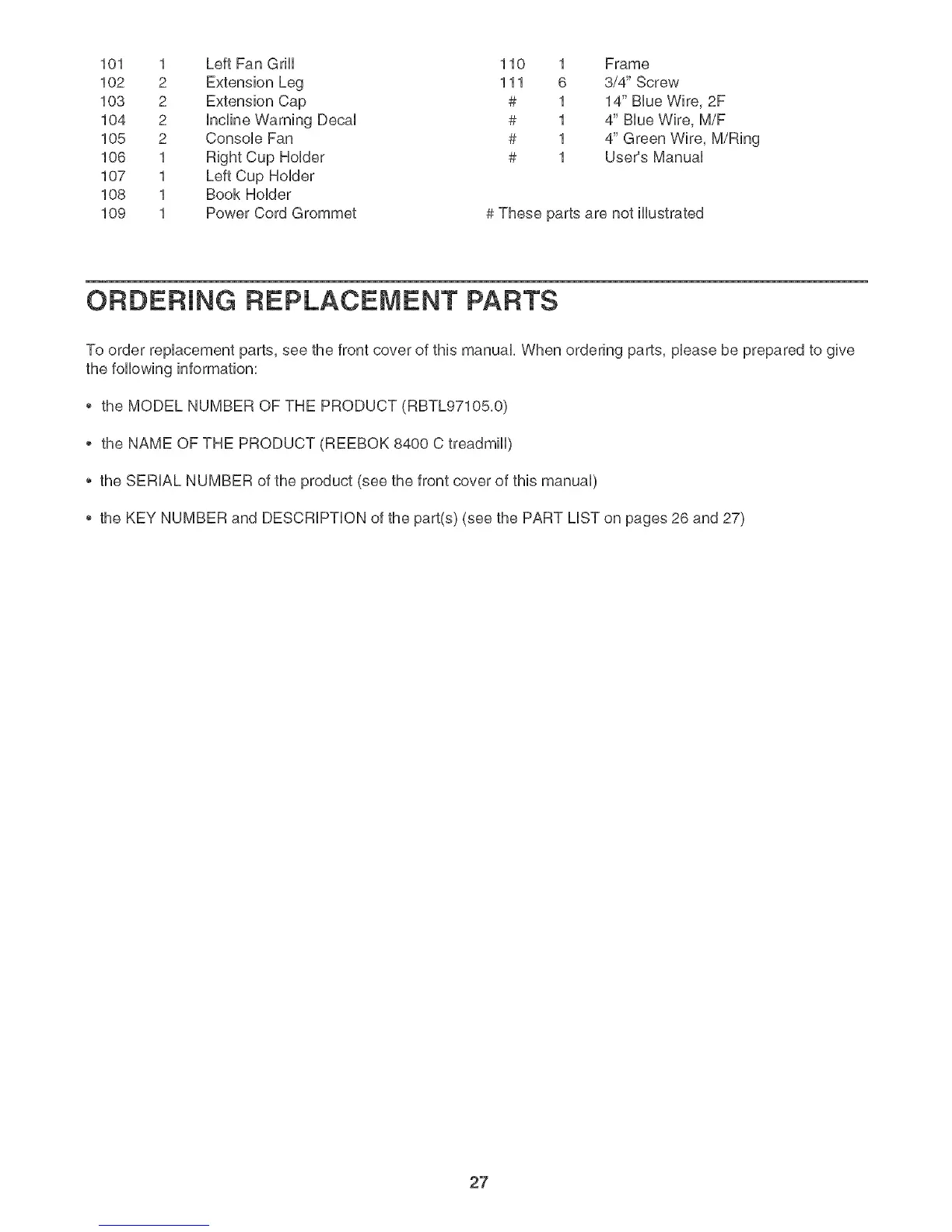 the KEY NUMBER and DESCRiPTiON of the part(s) (see the PART LiST on pages 26 and 27)