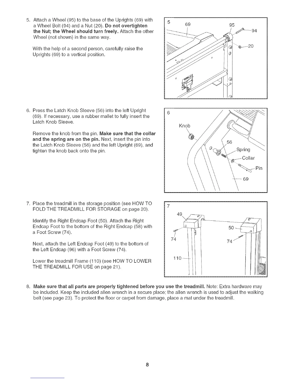 8, Makesurethatal partsareproperlytightenedbeforeyouusethetreadmil. Note:Extrahardwaremay