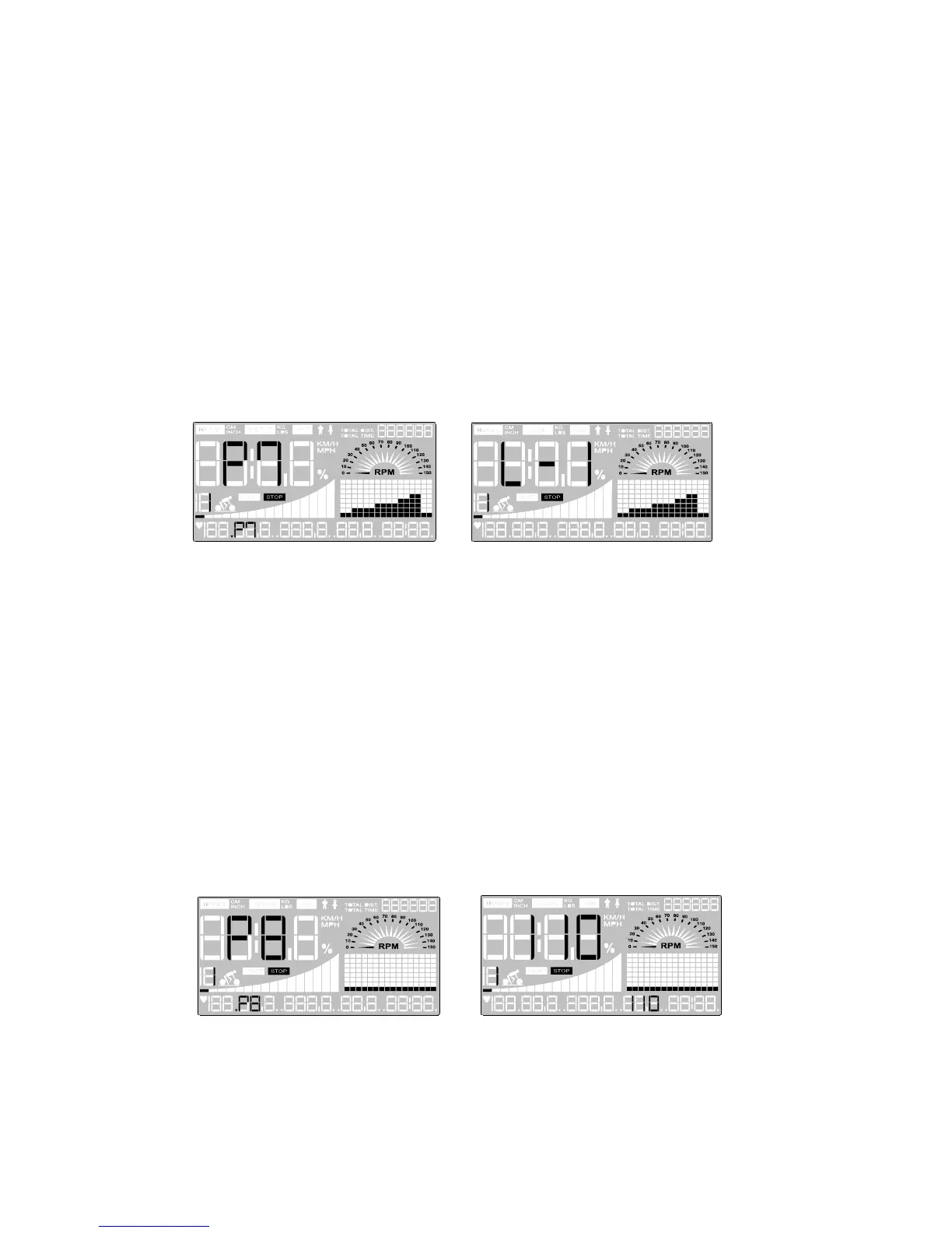 Etter at du har valgt P8 viser WATT-displayet 110. Med piltastene velger du det WATT-nivået du vil trene på.
