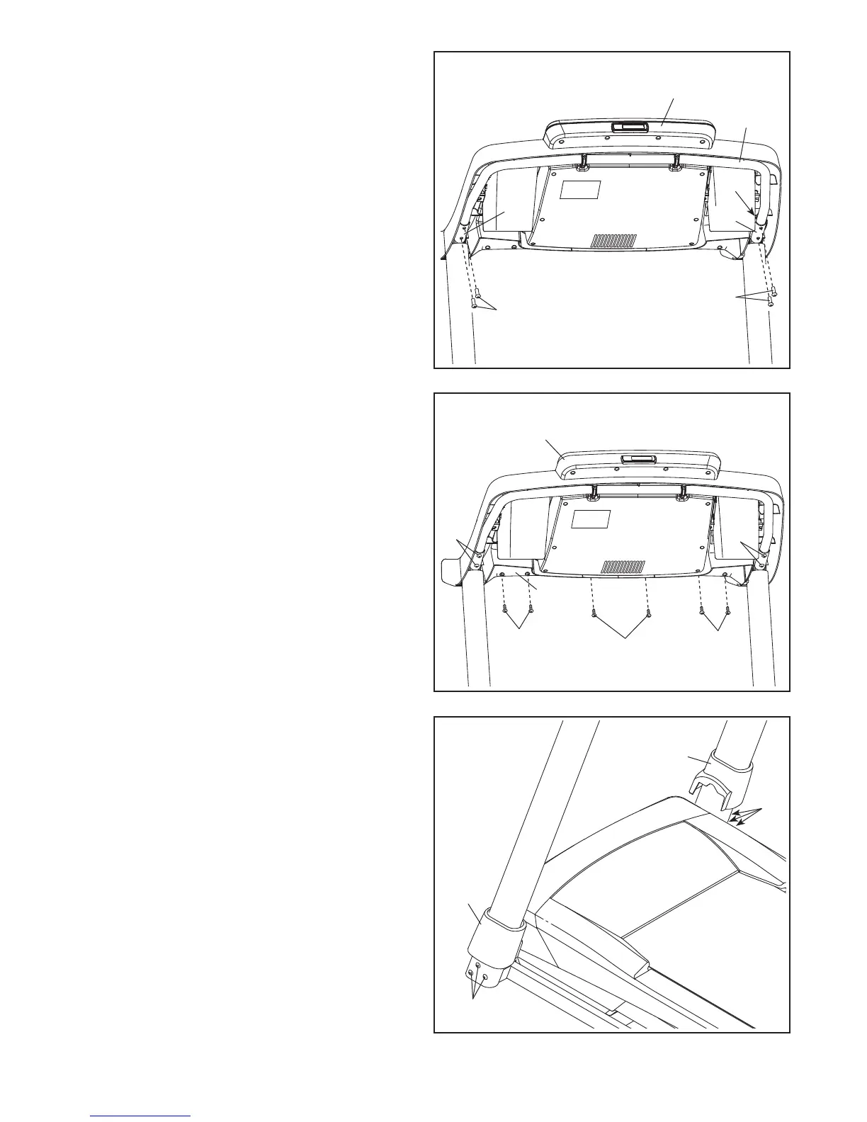 10. Set the console assembly on the Handrails (71).