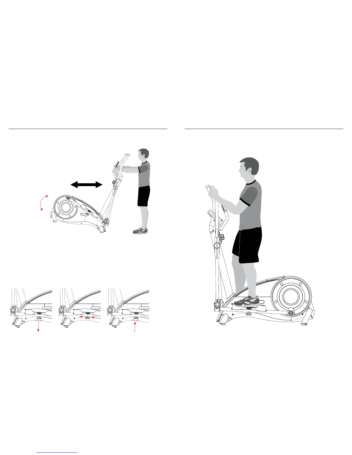 1. Tilt the cross trainer forward, onto the front stabiliser.