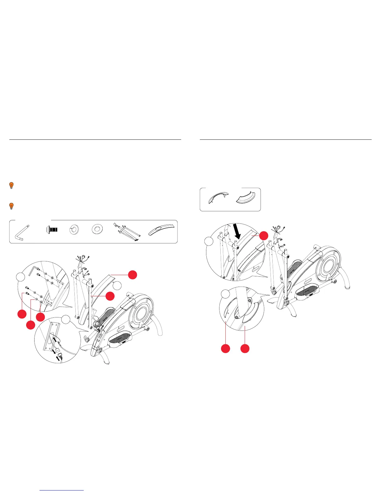 8. Fix the upright to the front of the crosstrainer using 4 x 215 bolts, 4 x 807 spring