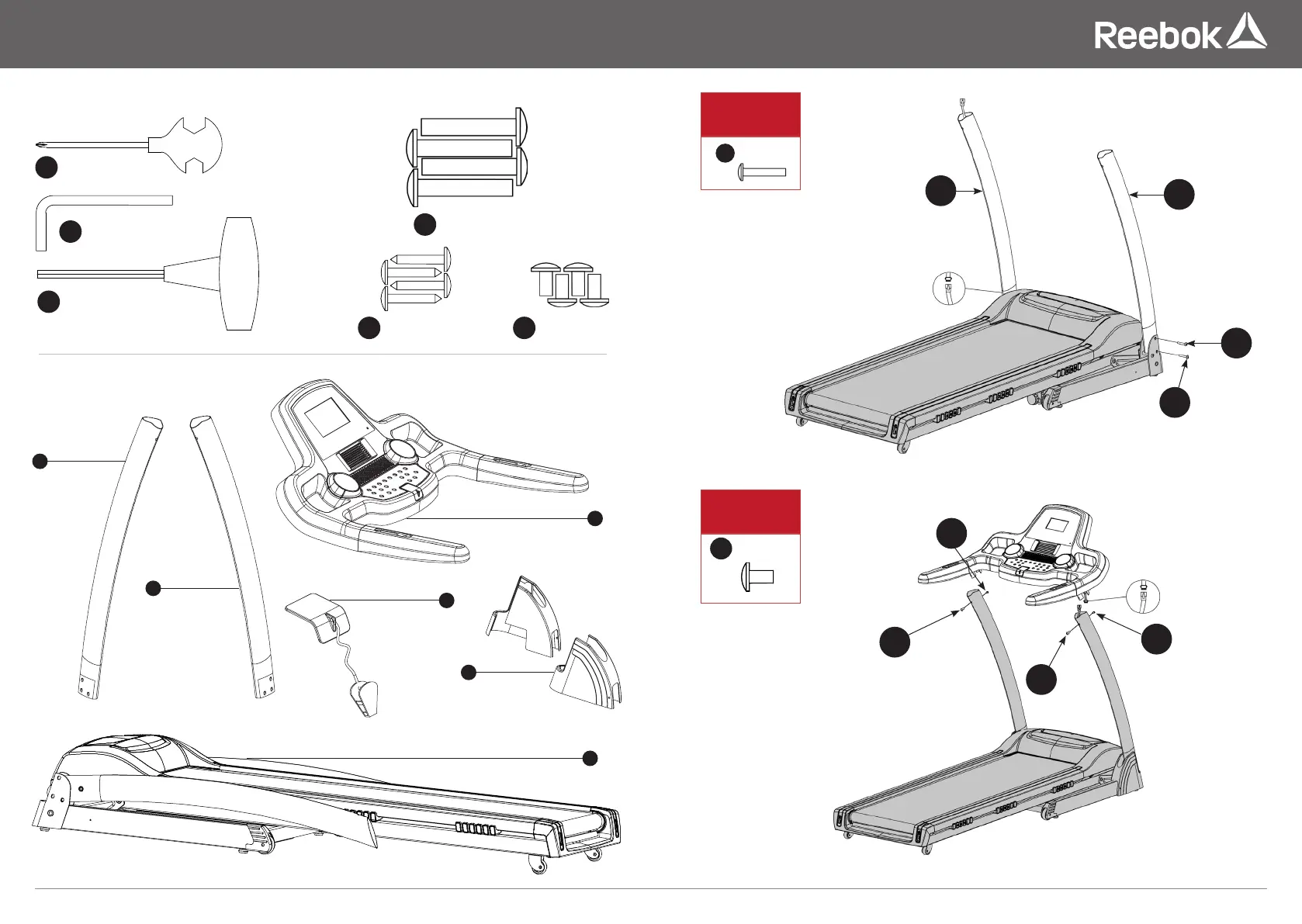 Reebok ONEGT40S - Assembly and Components; Hardware Pack; Parts List; Initial Assembly Steps 1-2