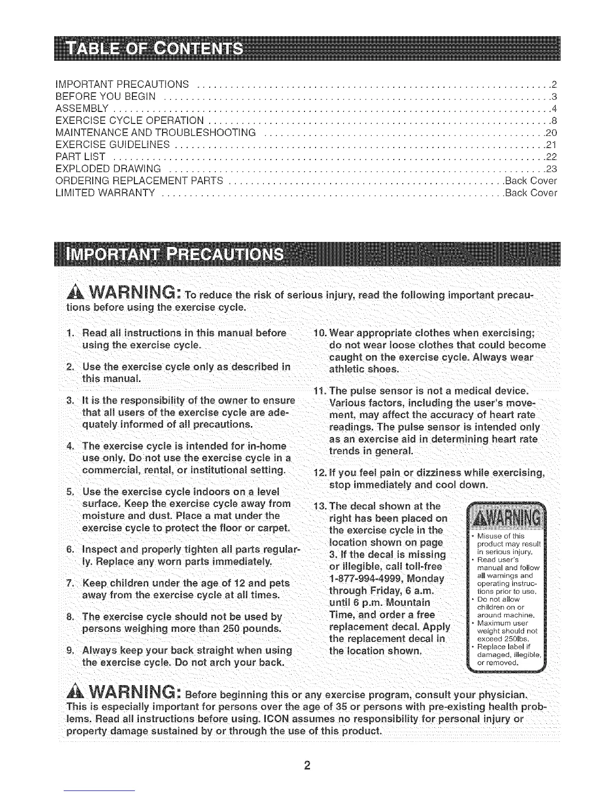 ,& WARN raNG:Beforebeginningth soranyexerciseprogram,consultyourphysician.