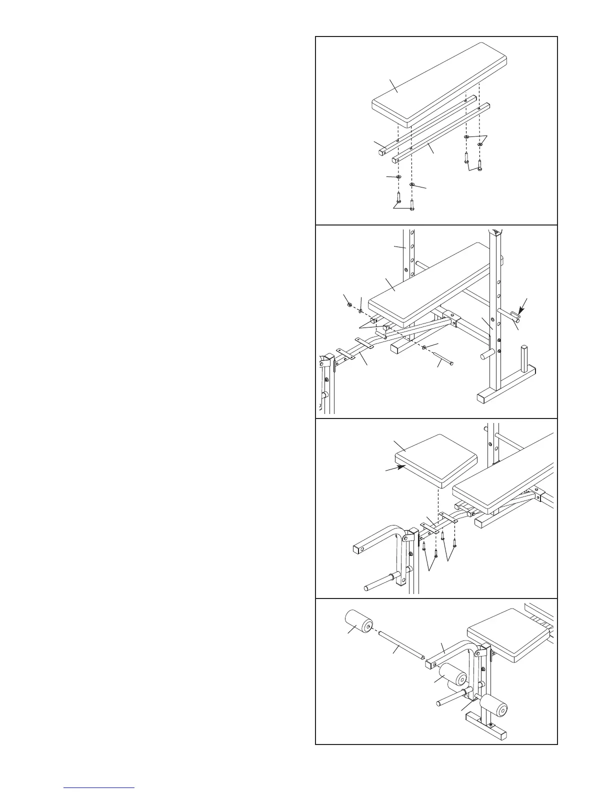 Backrest Tubes (12) to the Bench Frame (1) with
