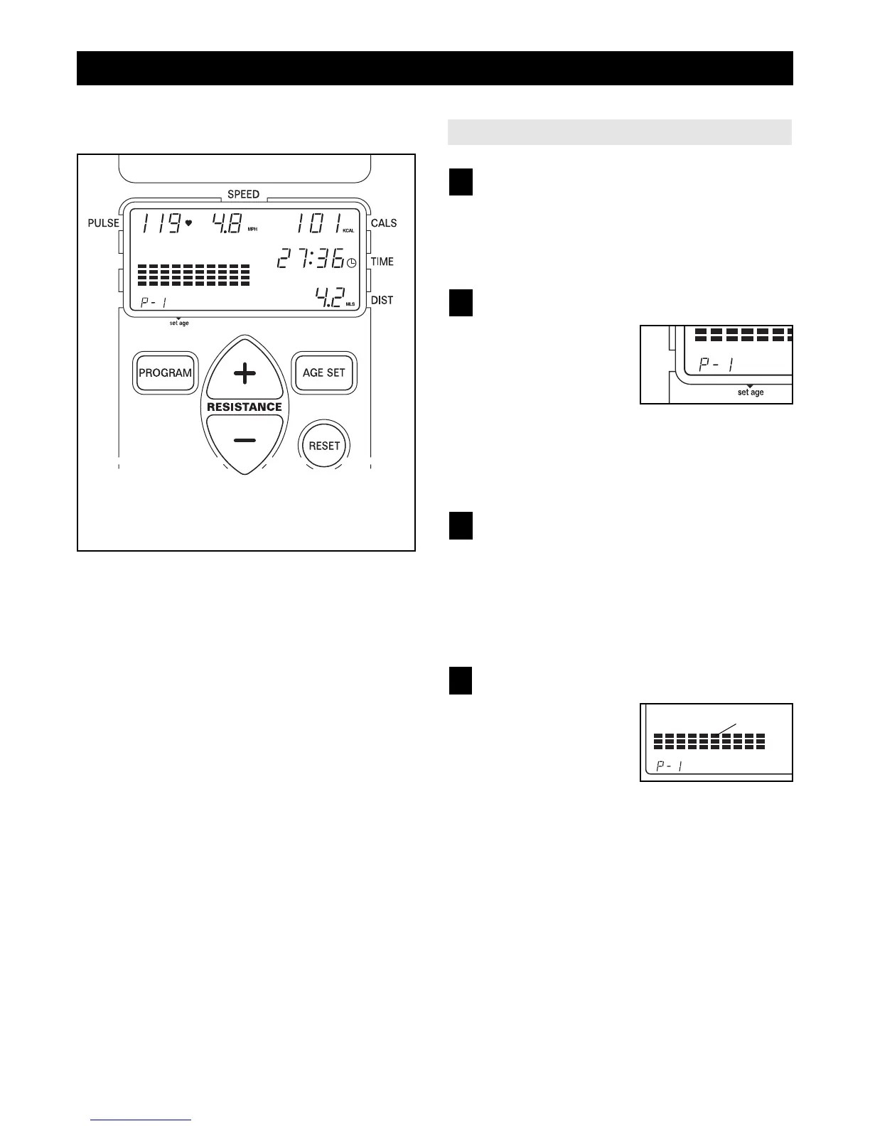 the pedals. As you press the resistance + or –
