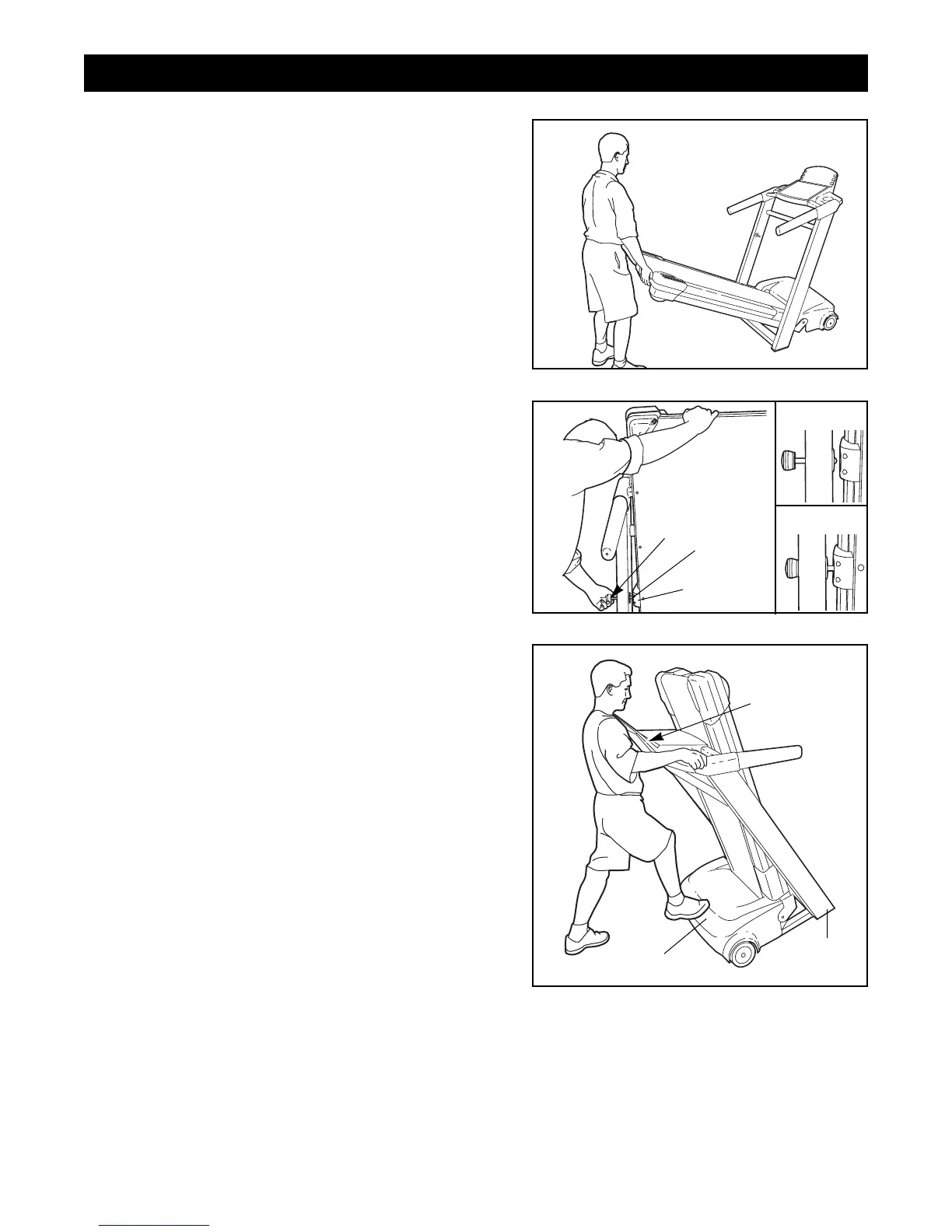 hand, slide the lock knob to the left. Pivot the treadmill down until the frame is past the lock pin.