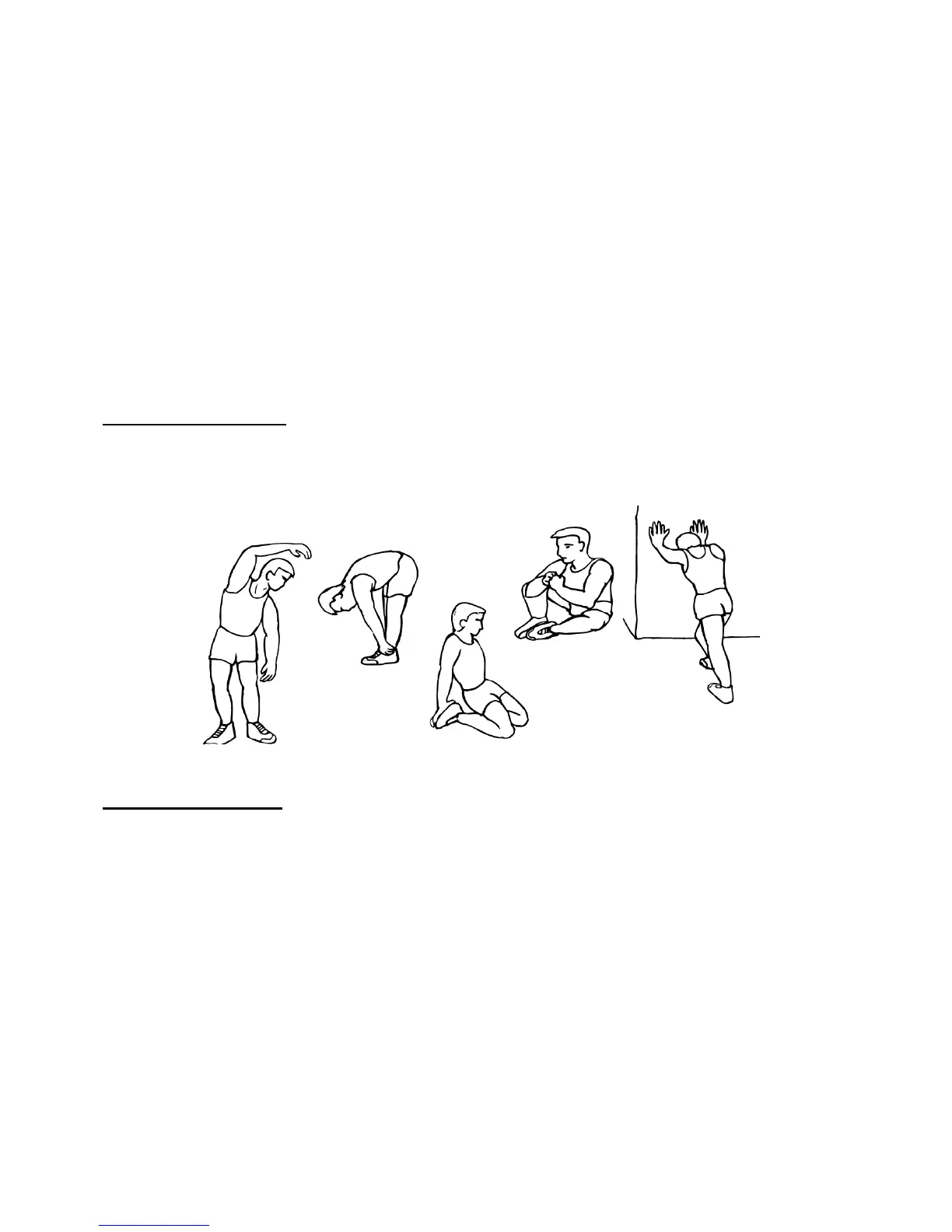as shown below. Each stretch should be held for approximately 30 seconds, do not force or jerk