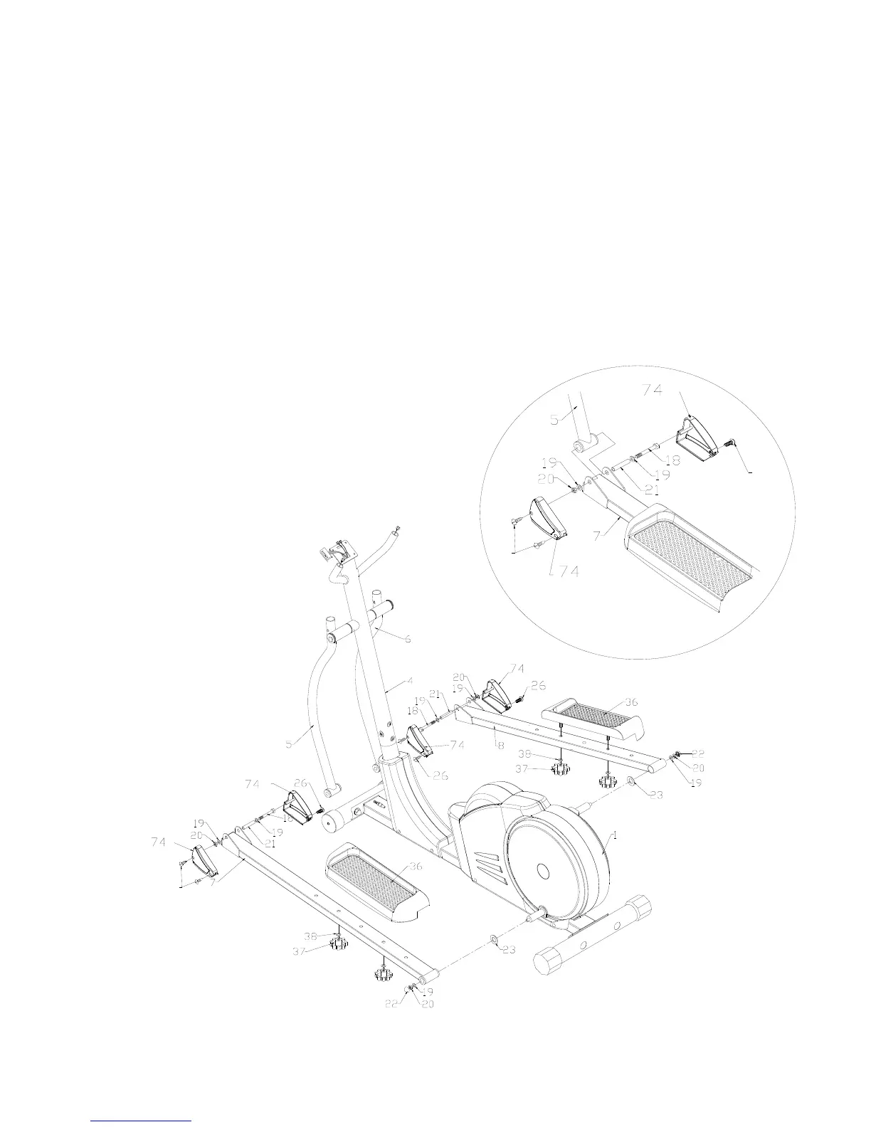 Screw (26). Put the Foot Pad (L+R) (36) to the position you like and tighten with Flat washer (38)