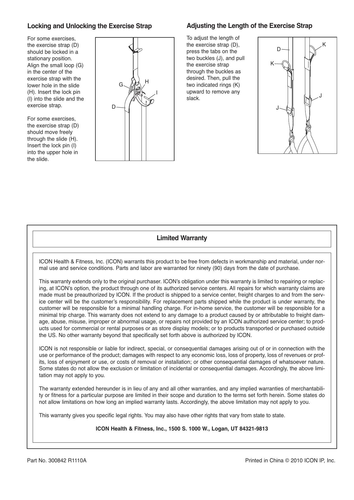 Part No. 300842 R1110A Printed in China © 2010 ICON IP, Inc.