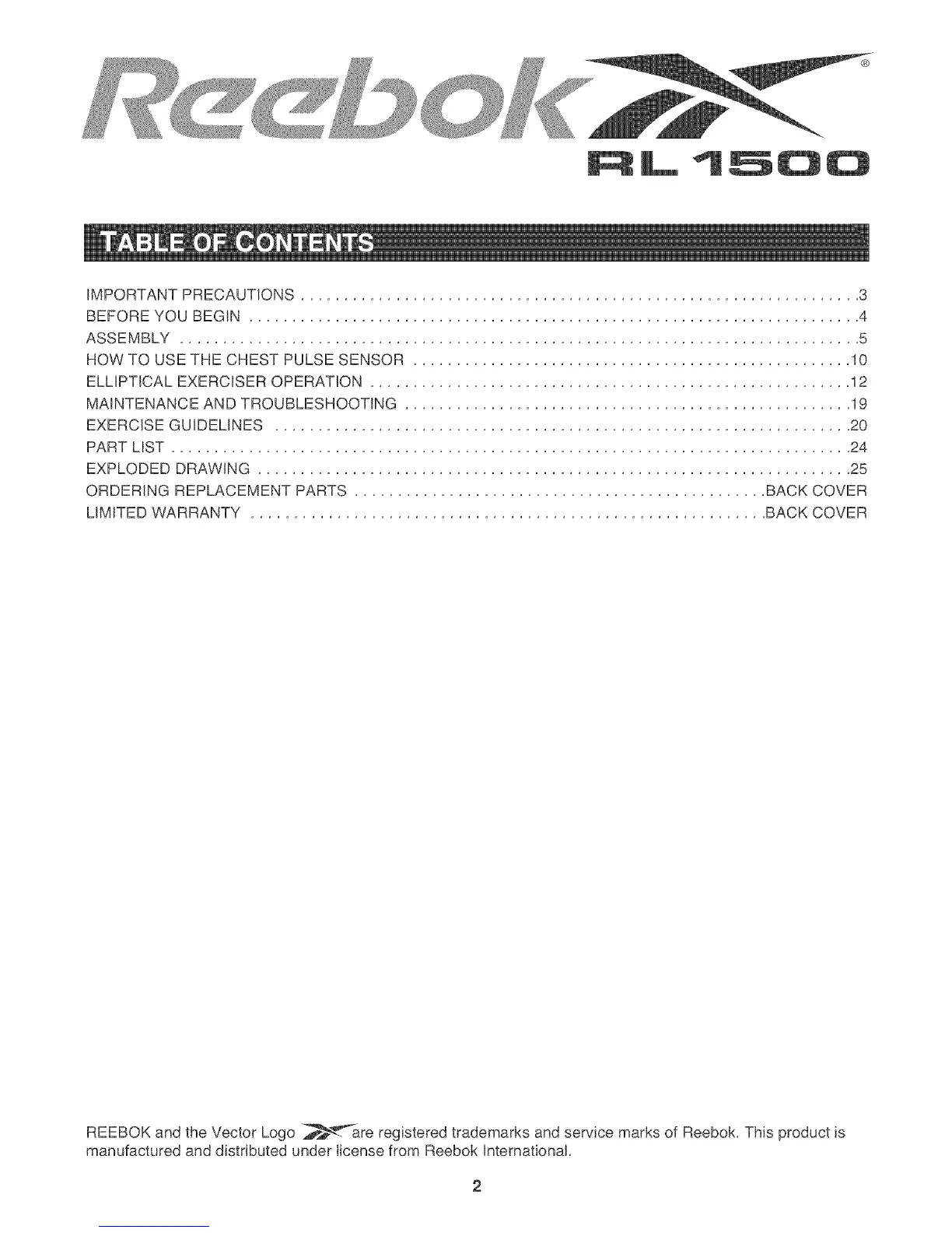 REEBOK and the Vector Logo _--__"_are registered trademarks and service marks of Reebok, This product is