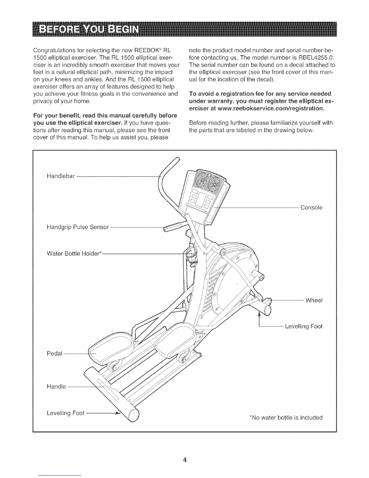 1500 elliptical exerciser. The RL 1500 elliptical exer-
