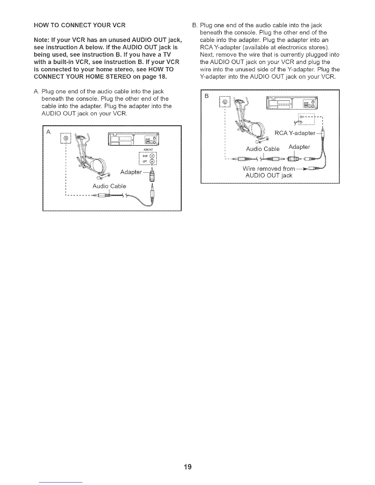 Y=adapter into the AUDIO OUT jack on your VCR.