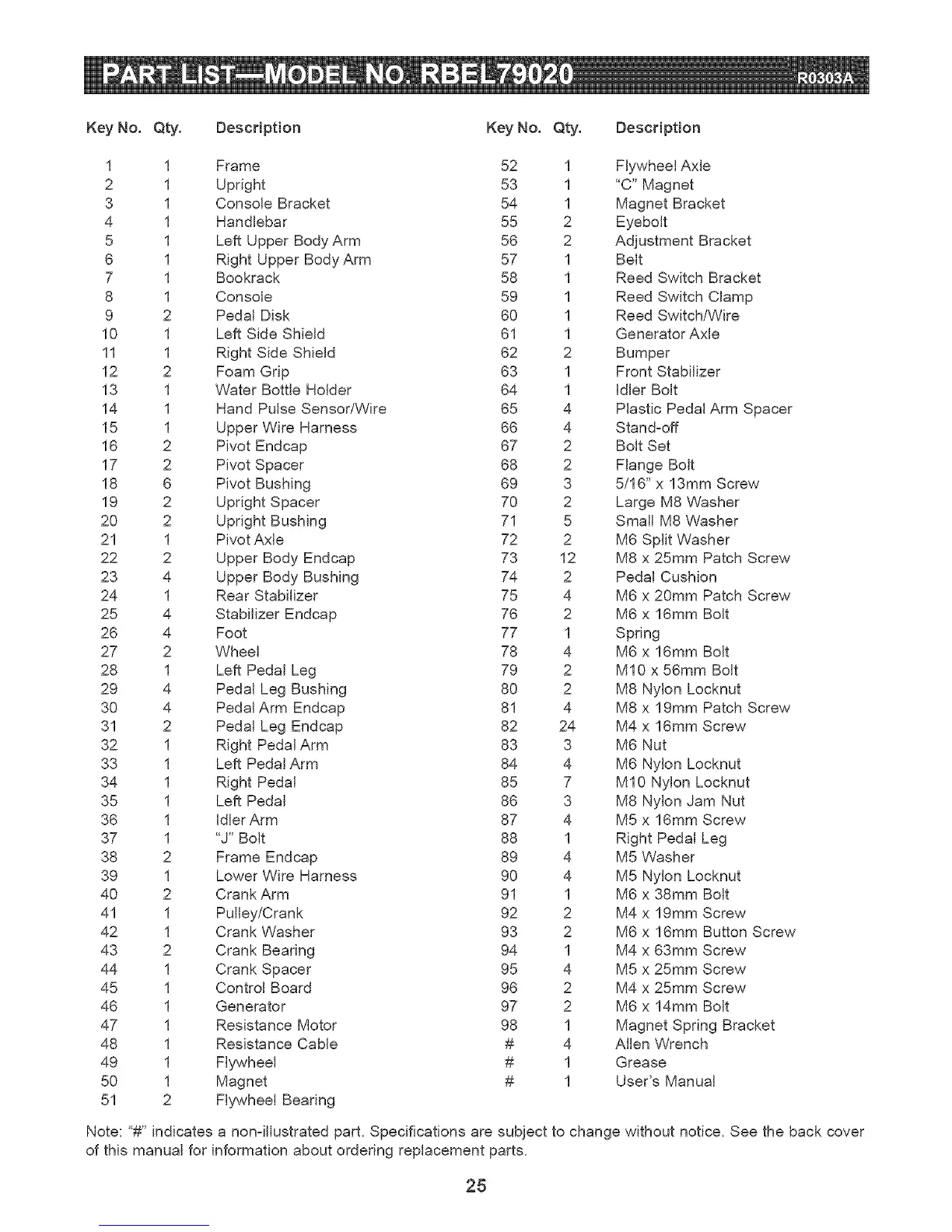 Key No. Qty. Description Key No. Qty. Desctipt{on