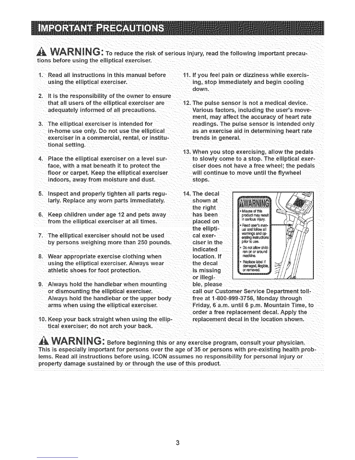 lems. Read aH instructions before using. ICON assumes no responsibility for personal injury or