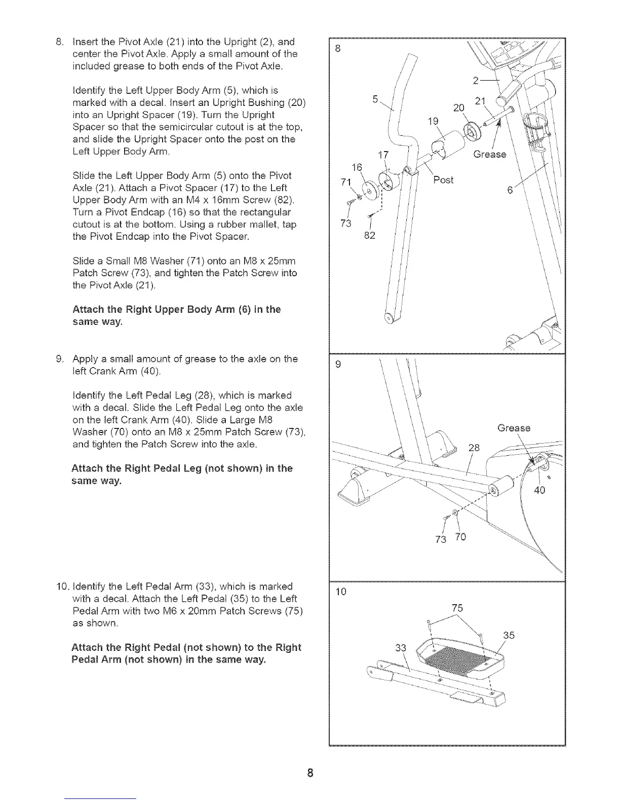 with a decal. Attach the Left Pedal (35) to the Left