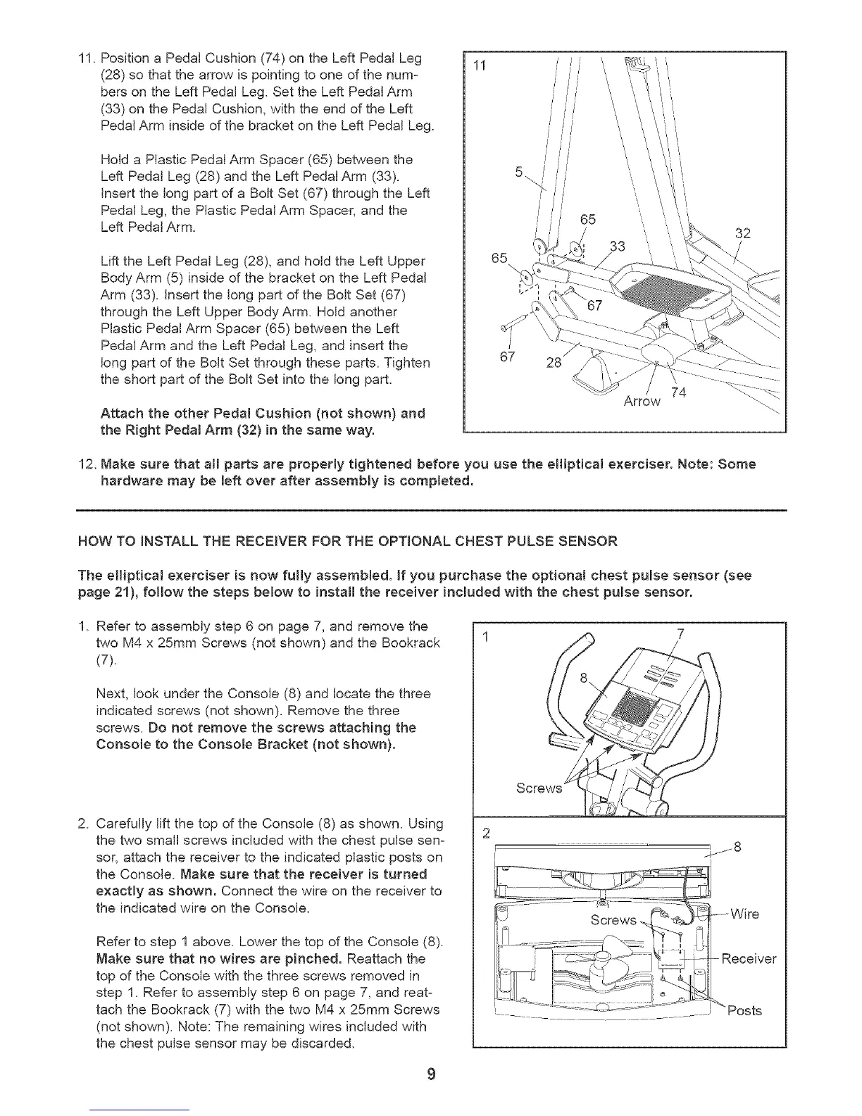 12. Make sure that alt parts are properly tightened before you use the elliptical exerciser. Note: Some