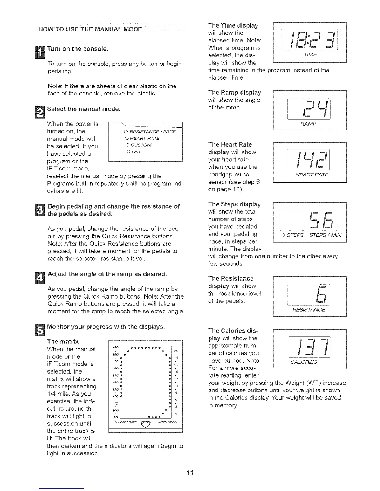 Monitor your progress with the displays.