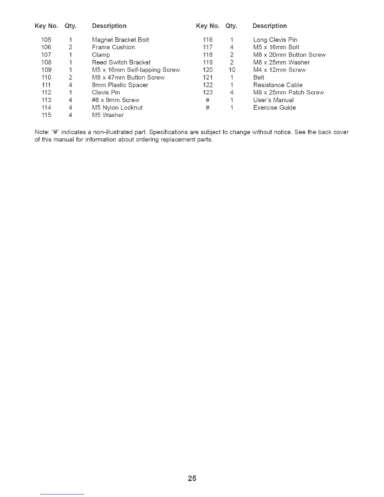 Key No. Qty. Description Key No. Qty. Desctipt{on