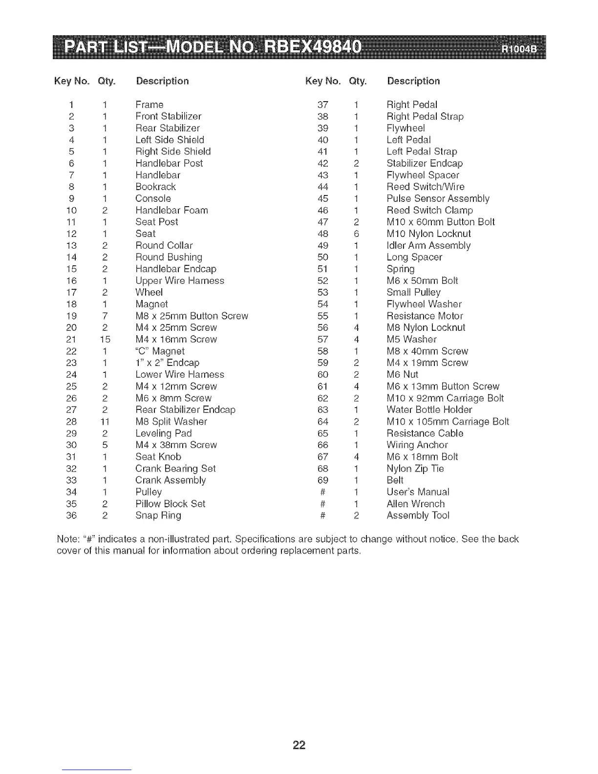 Key No. Qty. Description Key No. Qty. Description