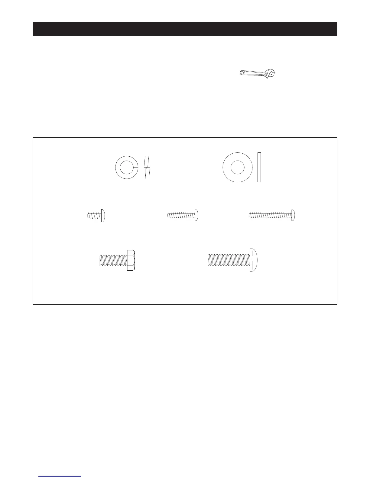 Use the part drawings below to identify the small parts used in assembly. The number in parenthesis below