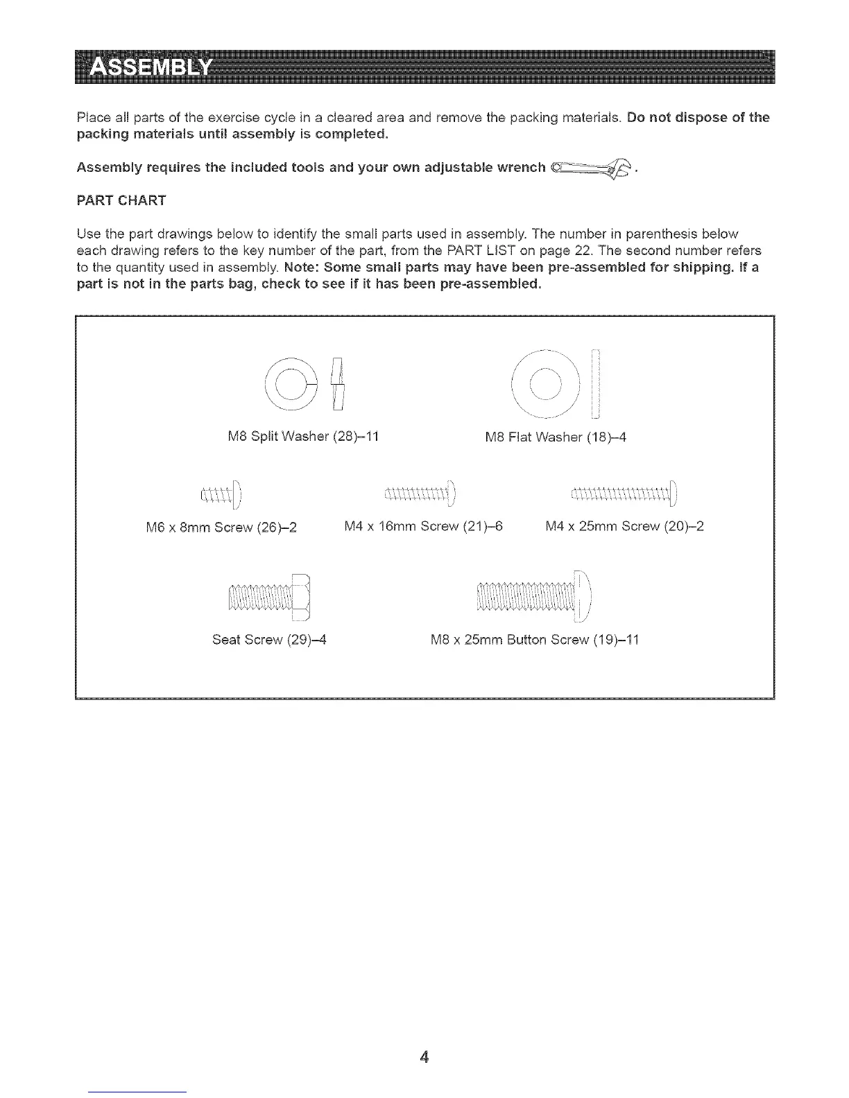 tothequantityusedinassembly.Note:Somesmaltpartsmayhavebeenpre°assembledforshipping.If a