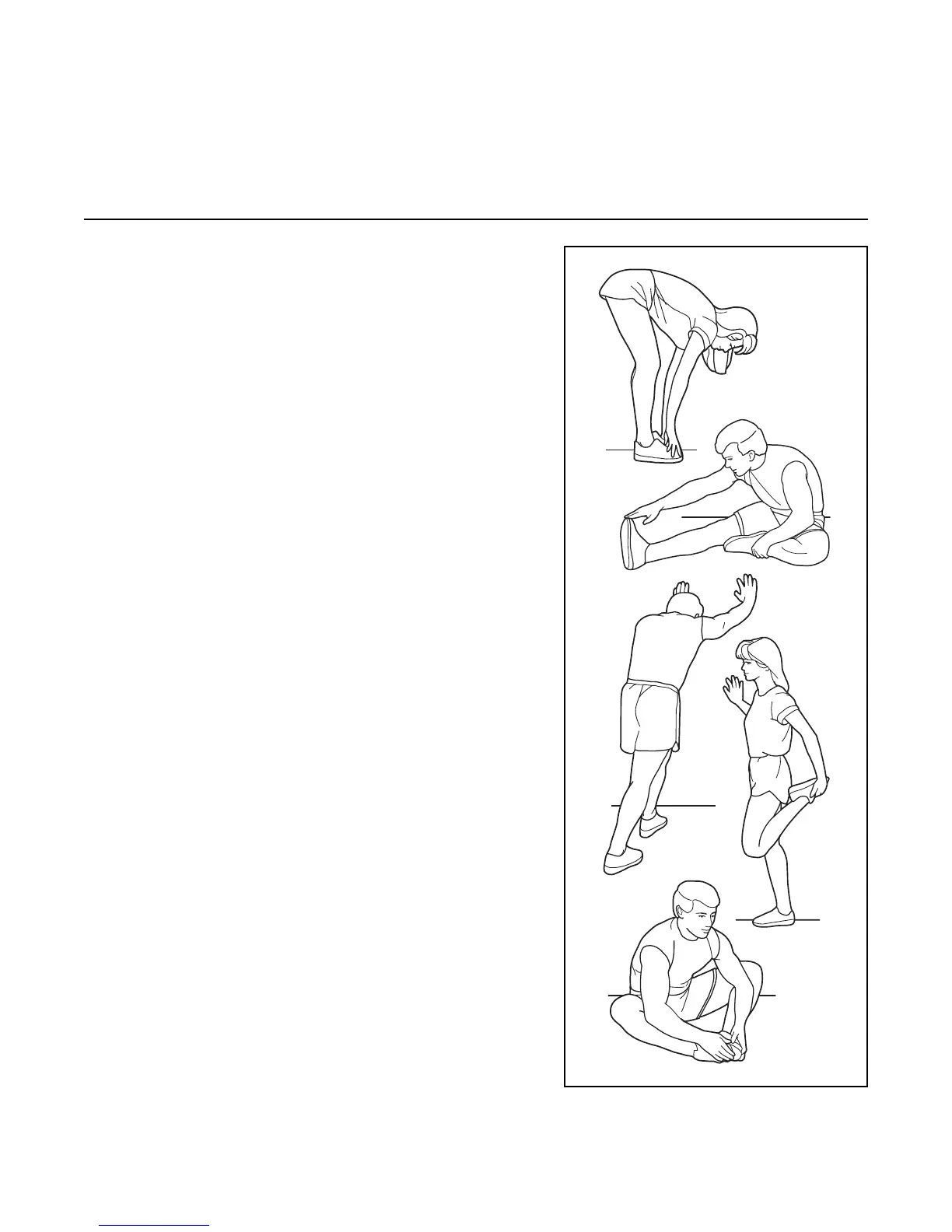 then relax. Repeat 3 times. Stretches: Hamstrings, back of