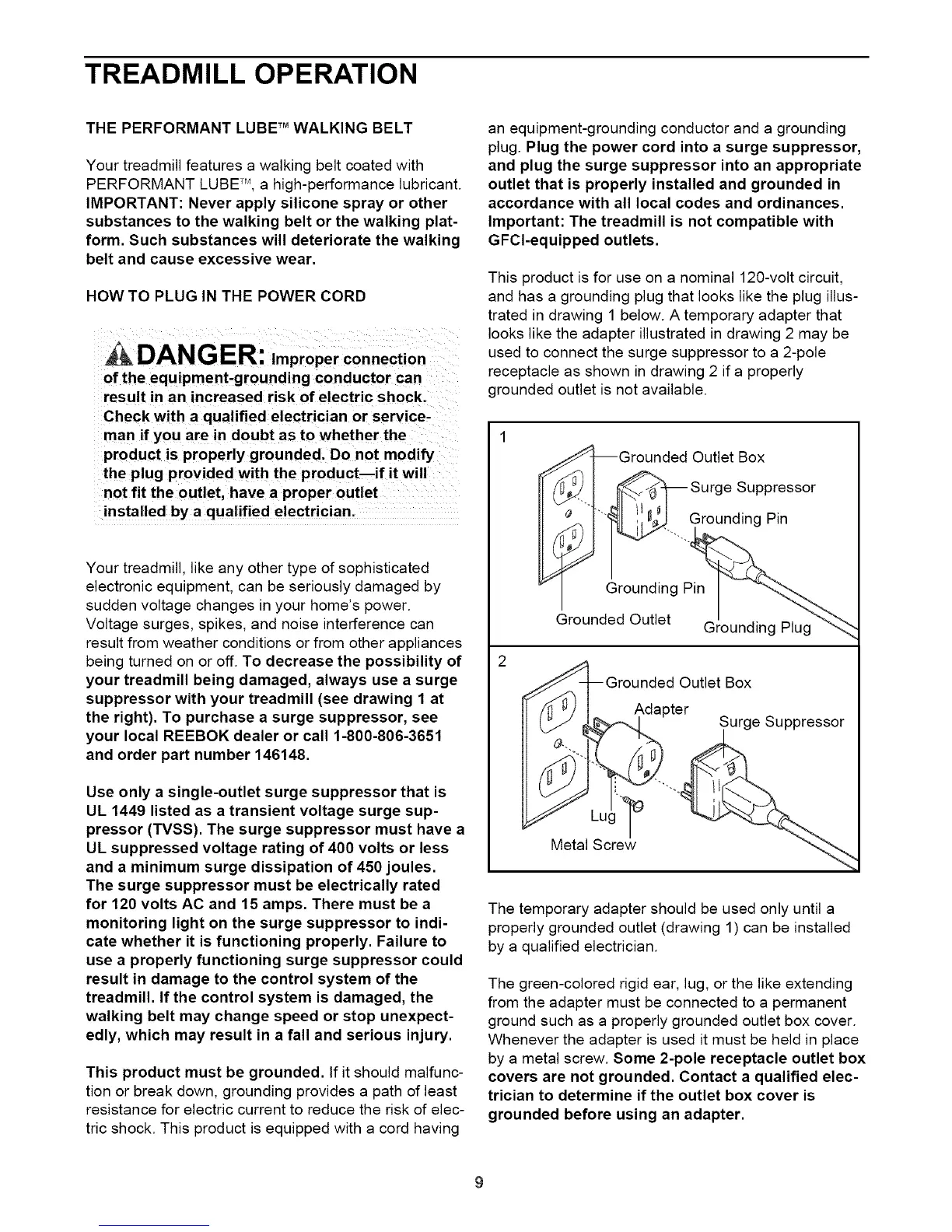 suppressor with your treadmill (see drawing 1 at