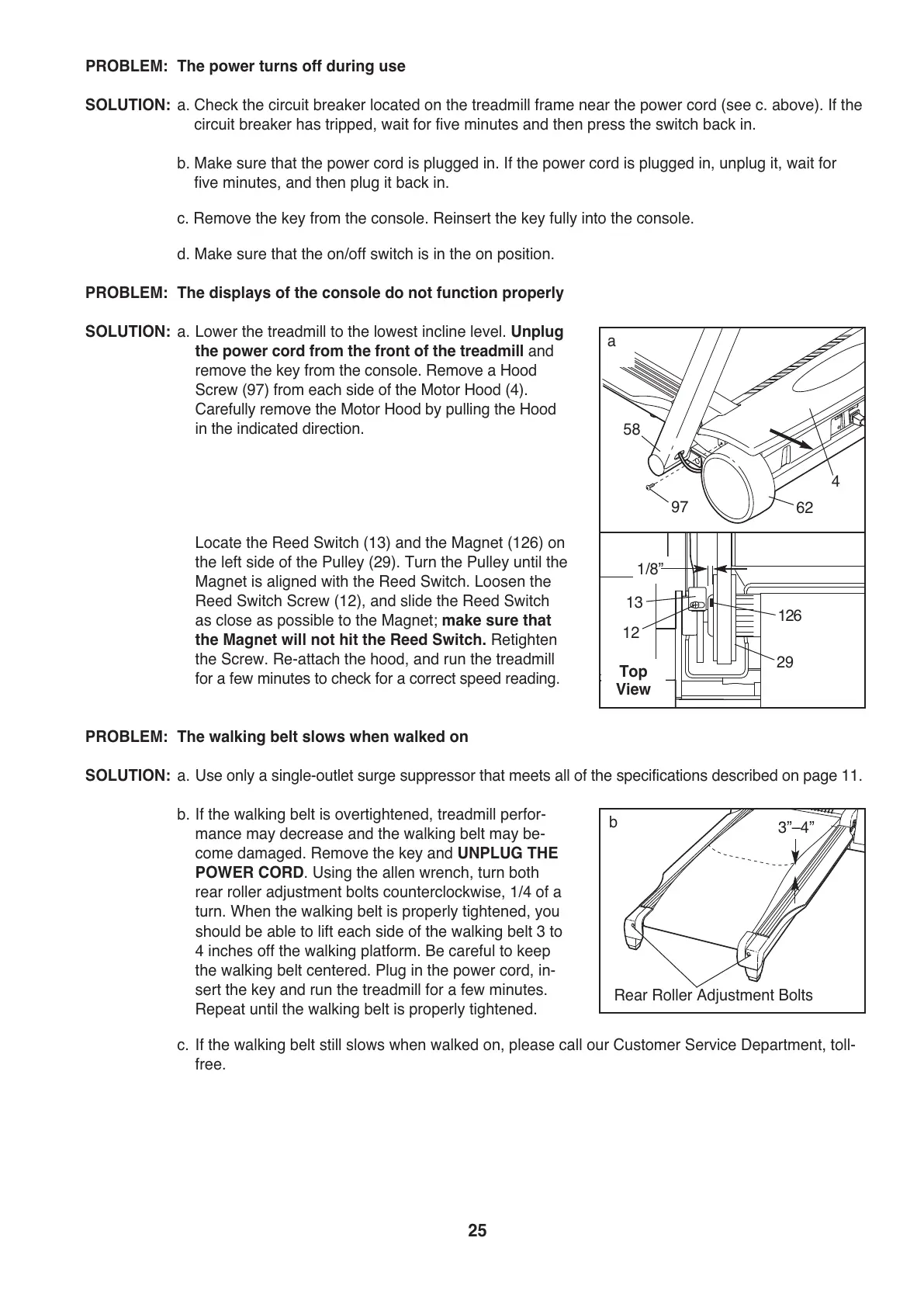 c. If the walking belt still slows when walked on, please call our Customer Service Department, toll-