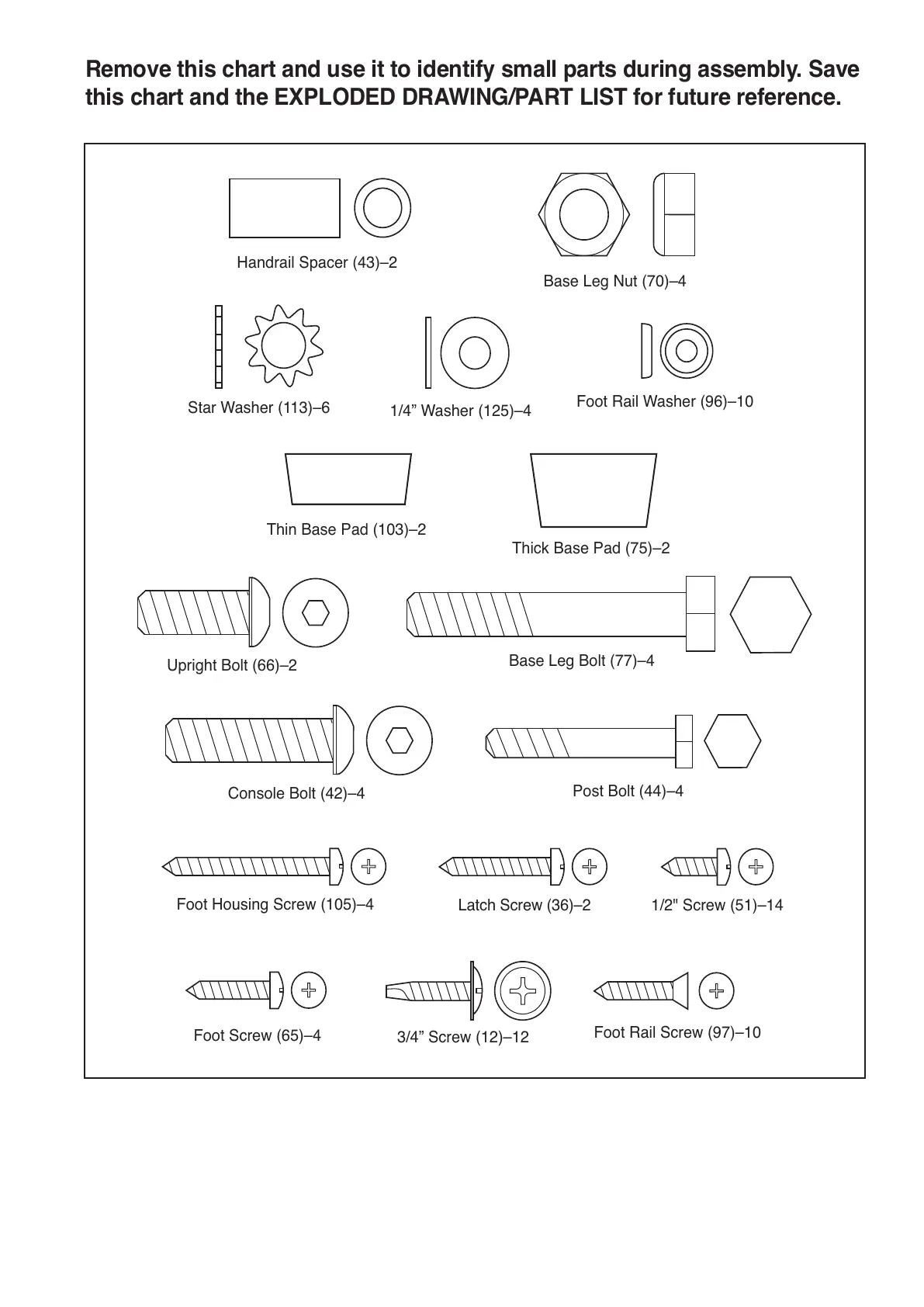 this chart and the EXPLODED DRAWING/PART LIST for future reference.