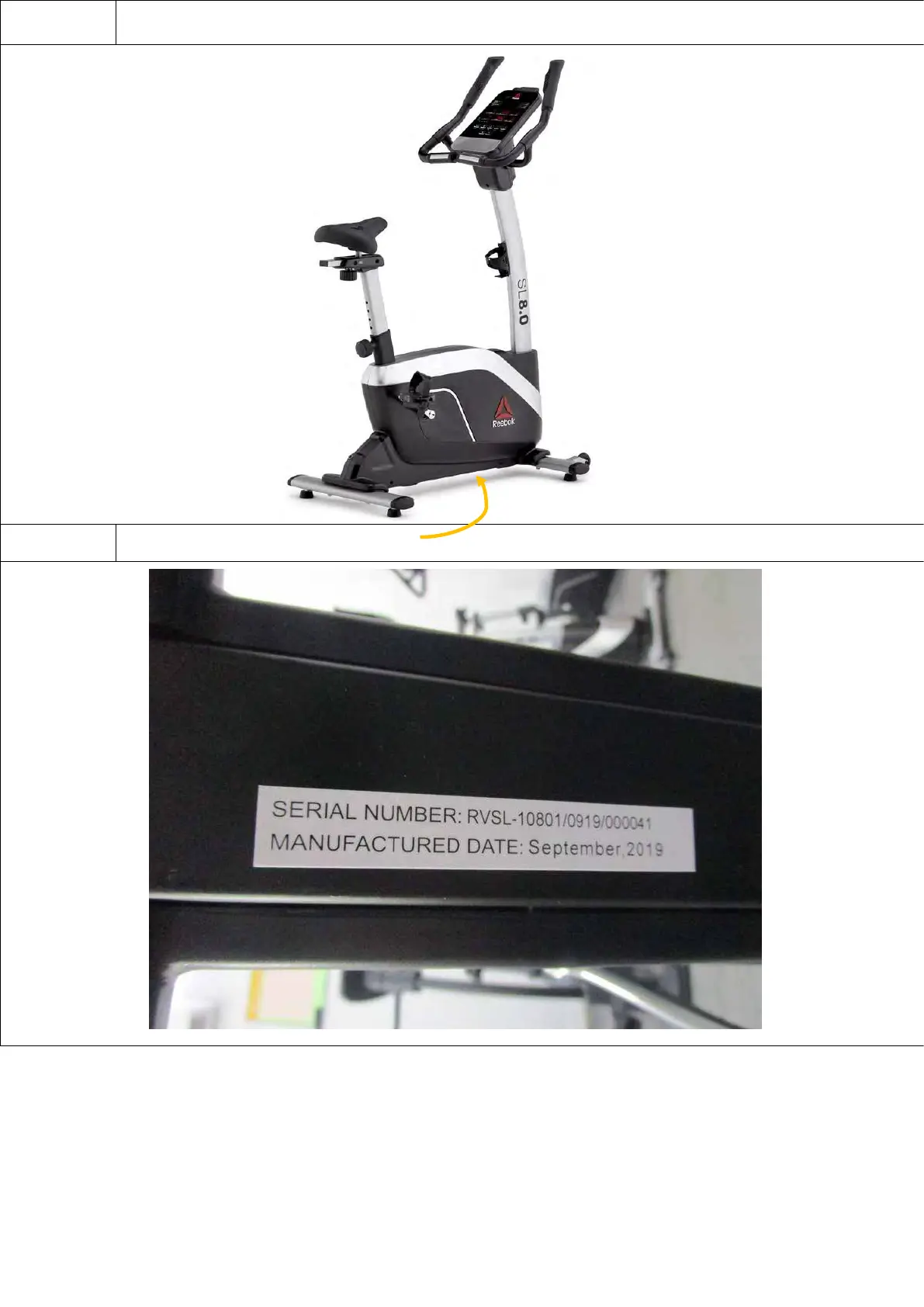 Reebok SL8.0 - Product Code and Serial Number Location