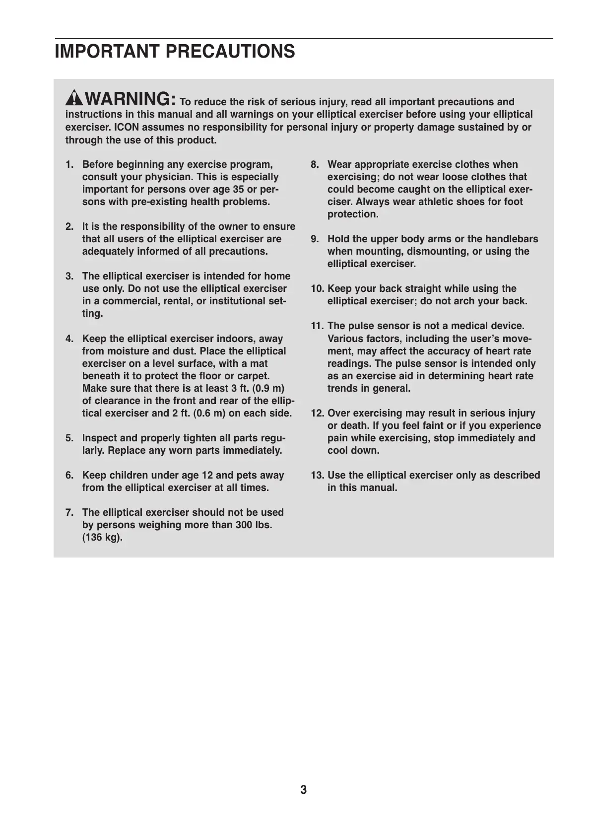 13. Use the elliptical exerciser only as described