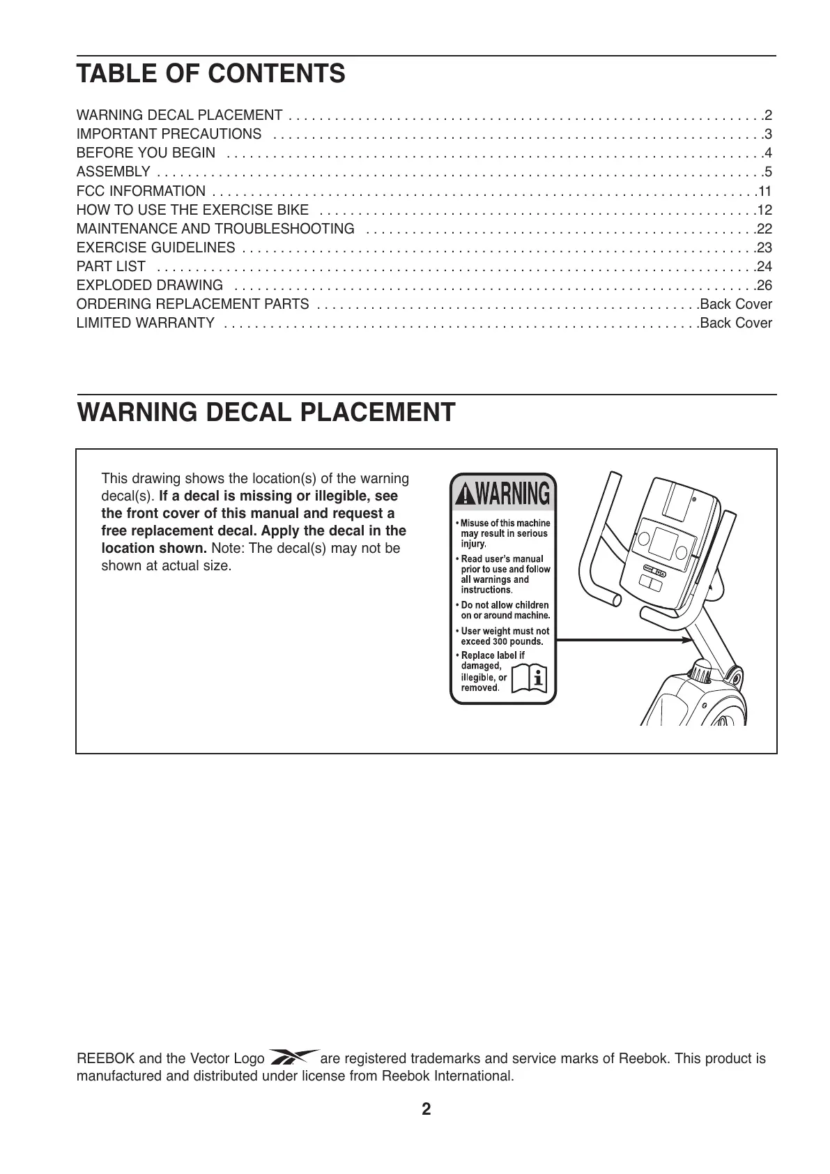 WARNING DECAL PLACEMENT . . . . . . . . . . . . . . . . . . . . . . . . . . . . . . . . . . . . . . . . . . . . . . . . . . . . . . . . . . . . . .2