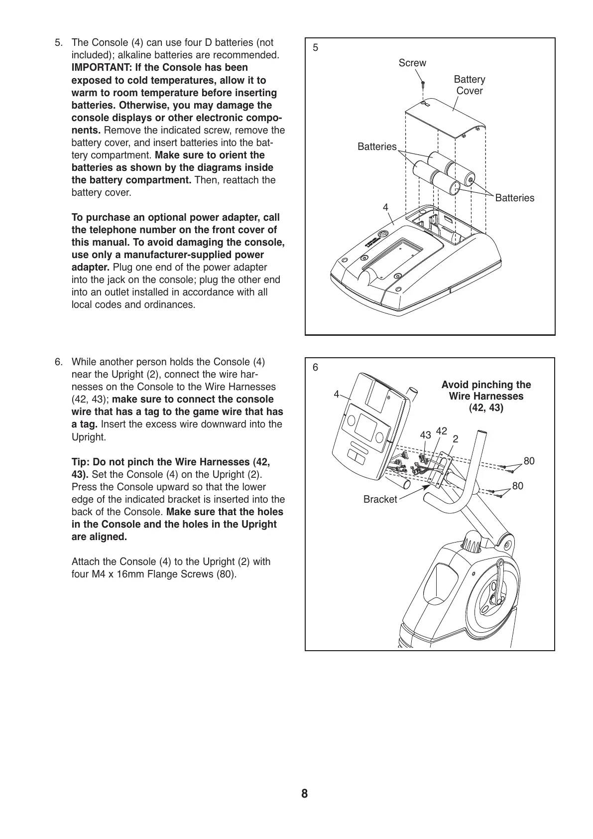 43). Set the Console (4) on the Upright (2).