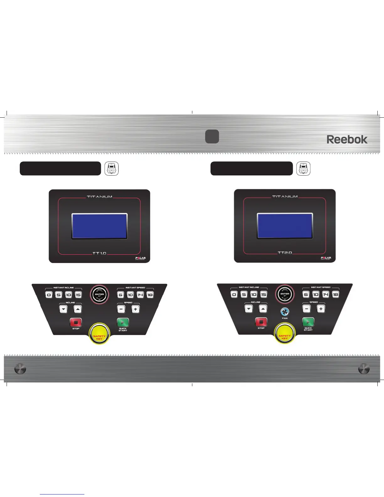 Reebok TT3.0 - Console Button Layouts; TT1.0 Console Buttons; TT2.0 Console Buttons