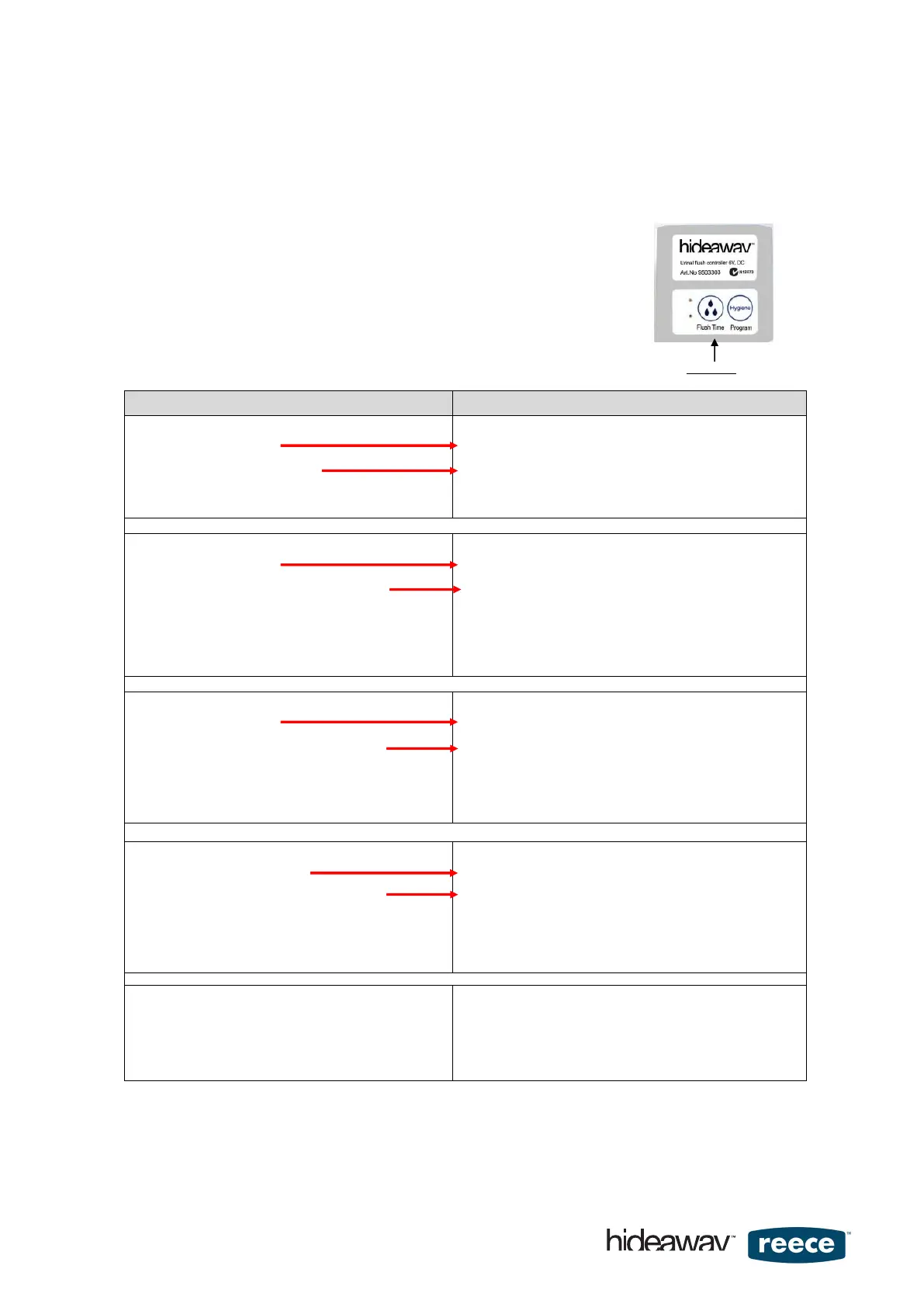 In the event of power being disconnect or switched off, all user settings and functions are retained by the Flush Control Unit.