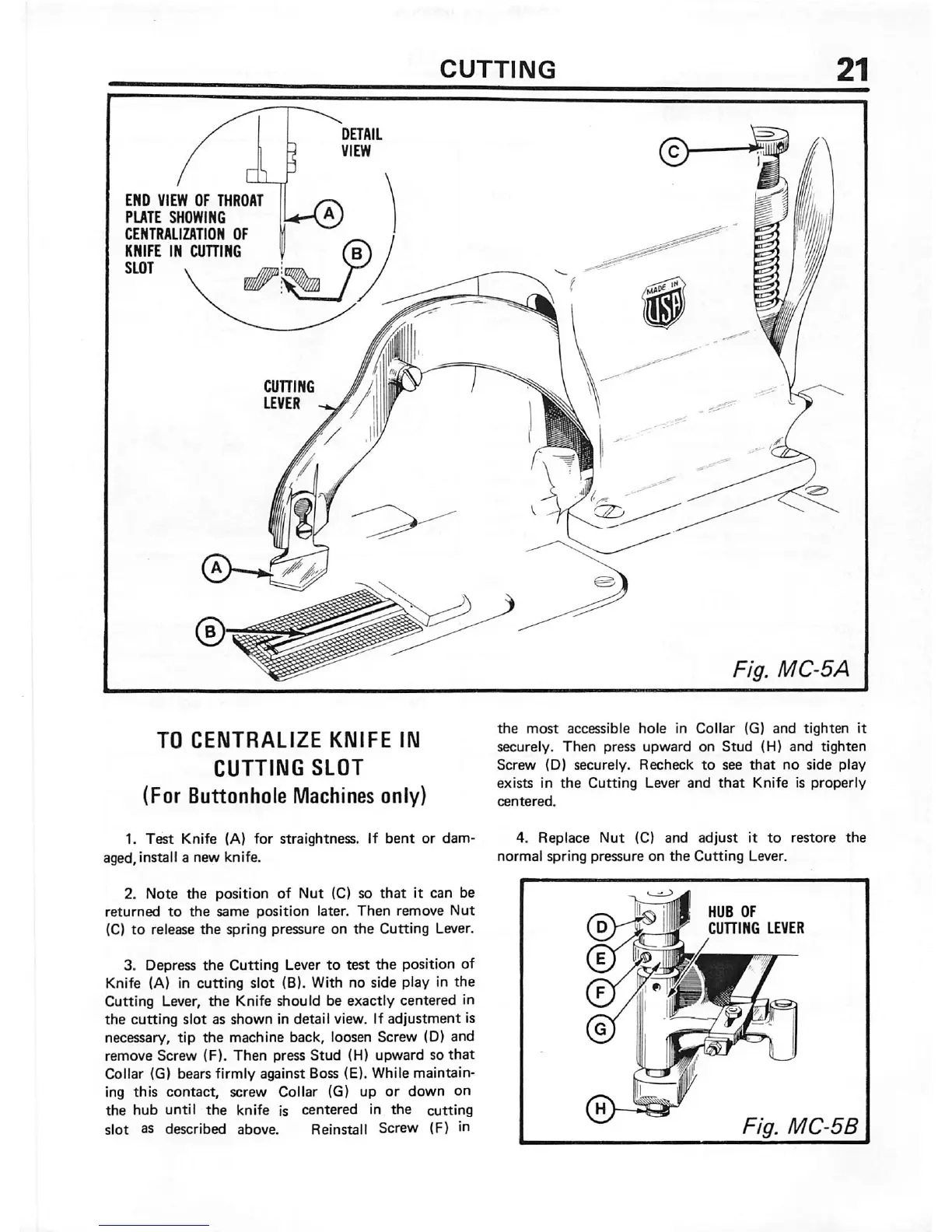 cutting slot as shown in detail view. If adjustment is